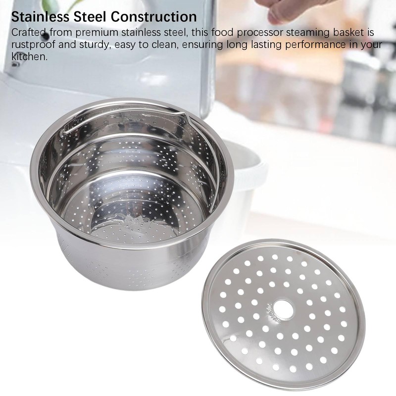 2. Stainless Steel Construction: Crafted from premium stainless steel, this food processor steaming basket is rustproof and sturdy, easy to , ensuring long lasting performance in your kitchen.