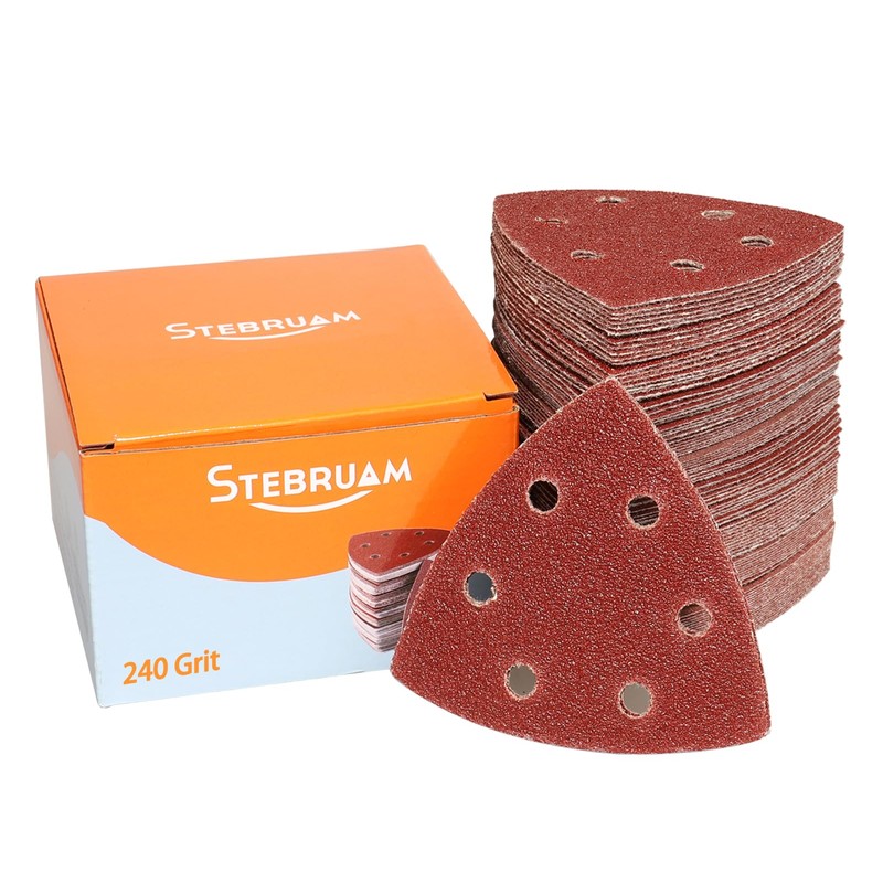 STEBRUAM Delta-Triangle Sanding Sheets,Sanding discs 70 Pieces Detail Sander Pads 6 Holes Triangle Sandpaper 240 Grits Triangle Sanding Pads 93 x 93 x 93 mm Sander Sheets