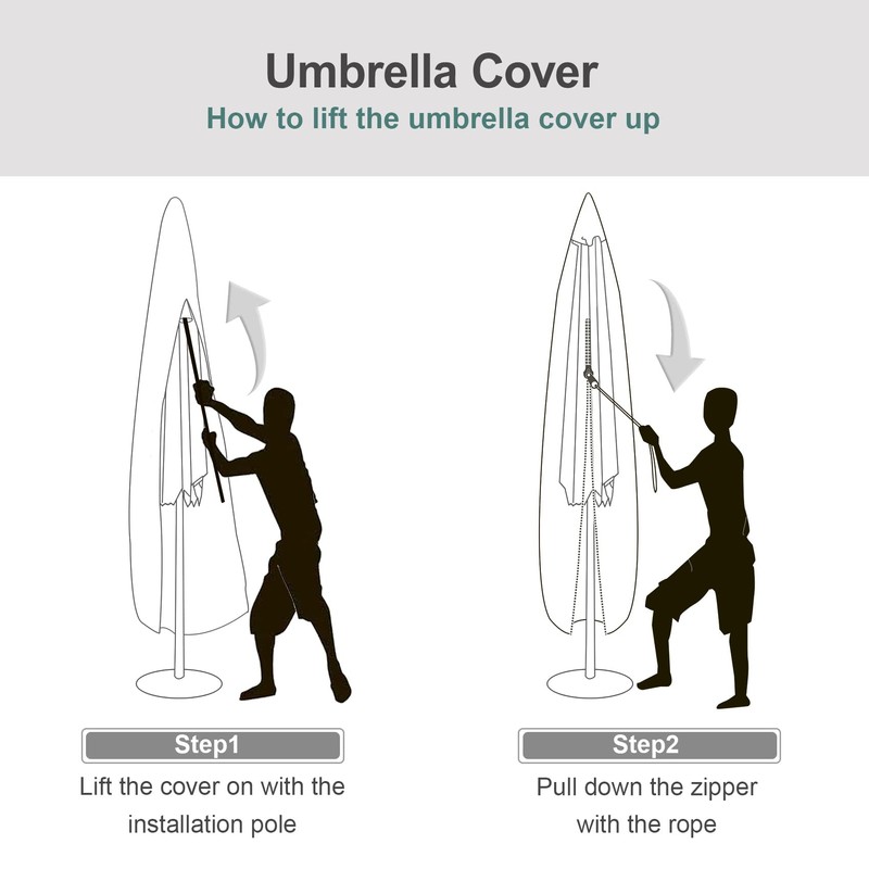 - WATERPROOF & DURABLE: This parasol cover is made of 600D polyester fade-resistant fabric with PU coating and double-stitched seams.