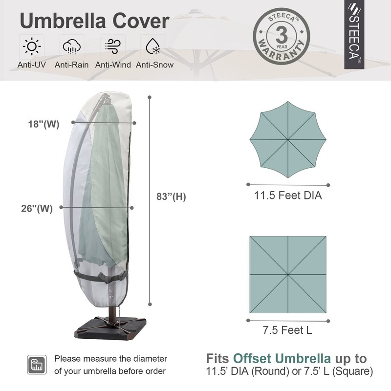STEECA Patio Waterproof Umbrella Cover, Outdoor Offset Parasol Cover for 7.5-11.5 Feet Cantilever Banana Frame Umbrella