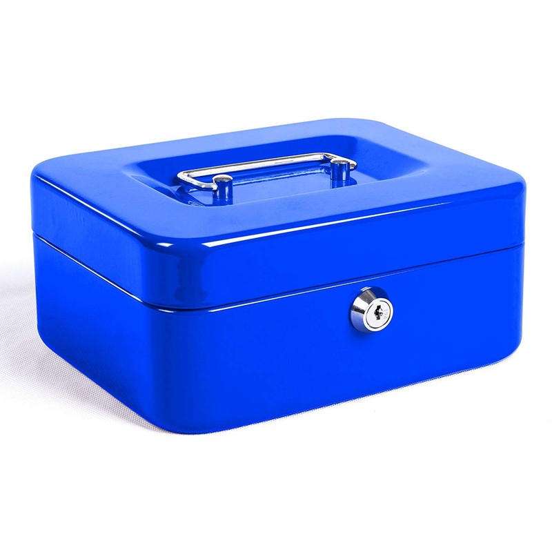 Steel Cash Box Safe with Lock 2 Keys, blue