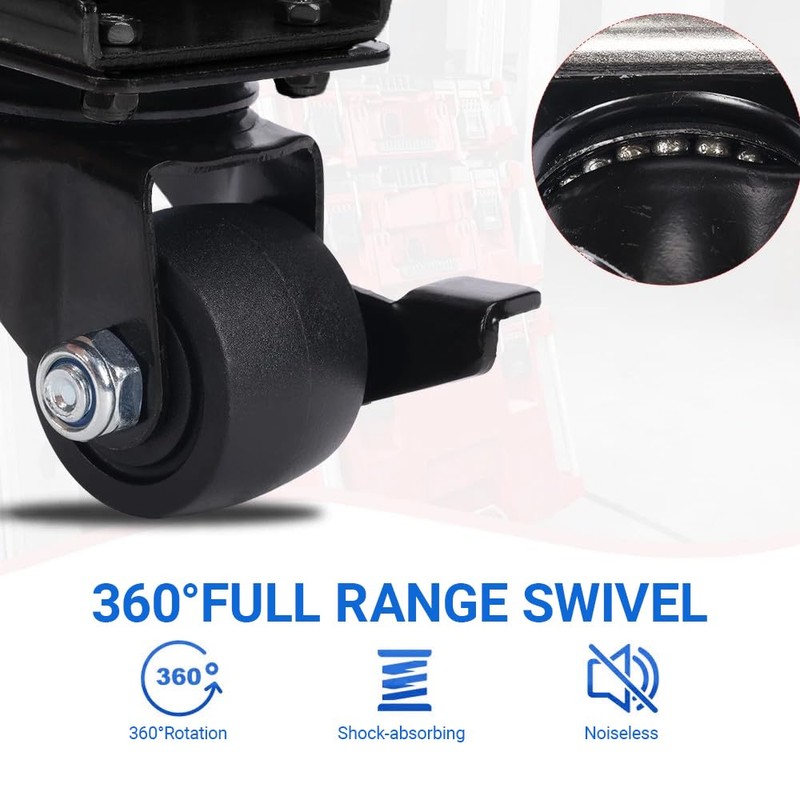 Steel Construction Front Wheels, Heavy- Duty Steel Construction Front Wheel Caster Wheel Kit Compatible for Milwaukee Packout Rolling Tool Box 200 Lbs Capacity