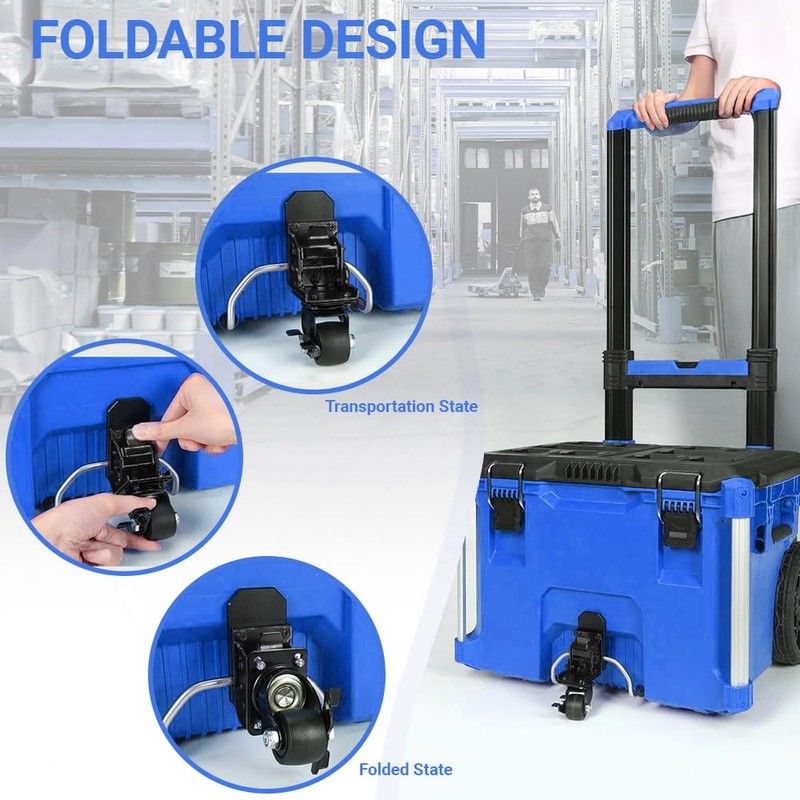 - Foldable Convenience: When not in use, simply fold the wheel to revert your toolbox to its original two-wheel setup, facilitating easy transportation
