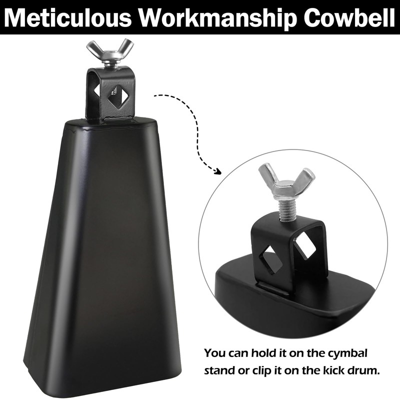 - High Quality - This cowbell is made of high-quality metal materials with a black coating for durability and anti-corrosion. The smooth surface and comfortable touch make it easy to play.