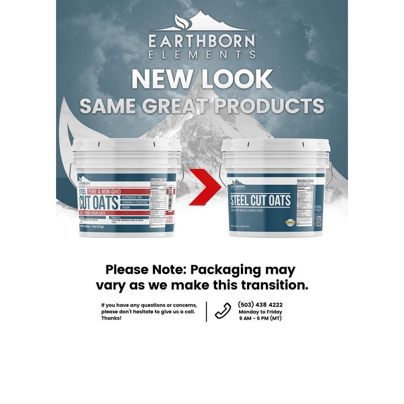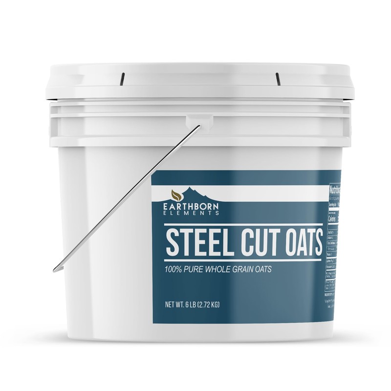 - Earthborn Elements Steel Cut Oats in a resealable bucket