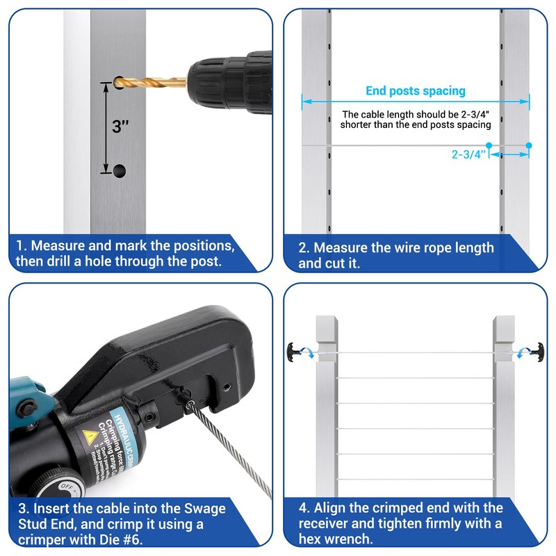 • [Versatile Application] Ideal for residential and commercial use, this metal railing kit fits 2"x2" metal or wood posts, designed for 1/8" cable systems and suitable for both level and angled sections, offering easy installation for DIYers and pros