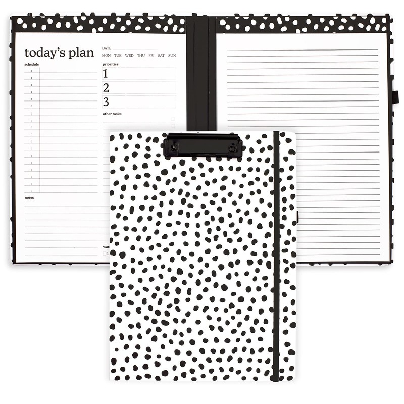 Steel Mill & Co Cute Clipboard Folio with Refillable Lined Notepad and Daily Planner Notepad, Double Notepad Clipboard Folder, Padfolio for Work, Black Dots