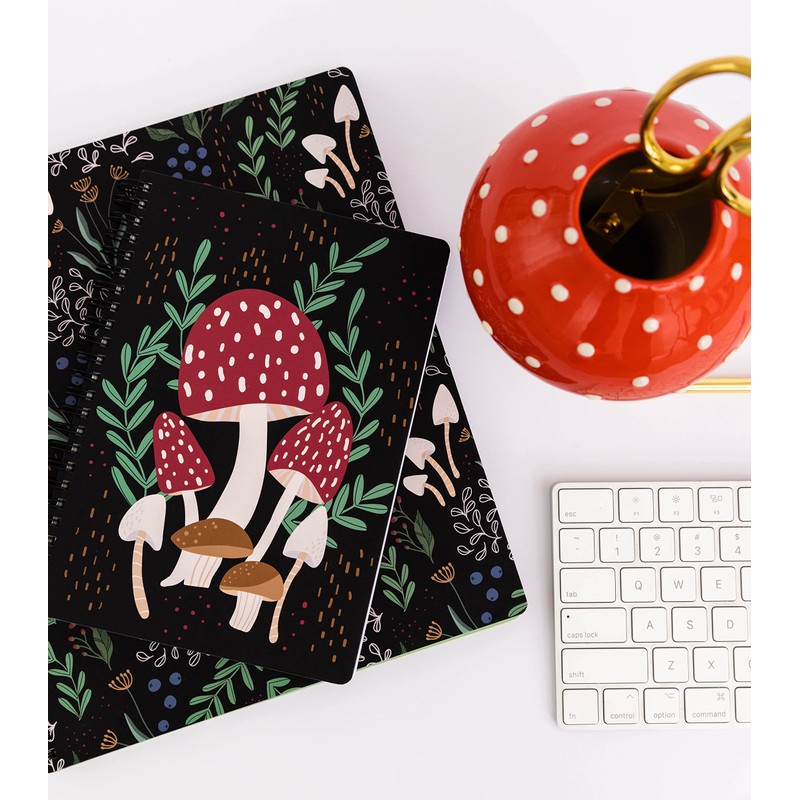 - INTERIOR POCKET: Features a durable hardcover with a trendy mushroom design and a double sided storage pocket to keep loose notes organized