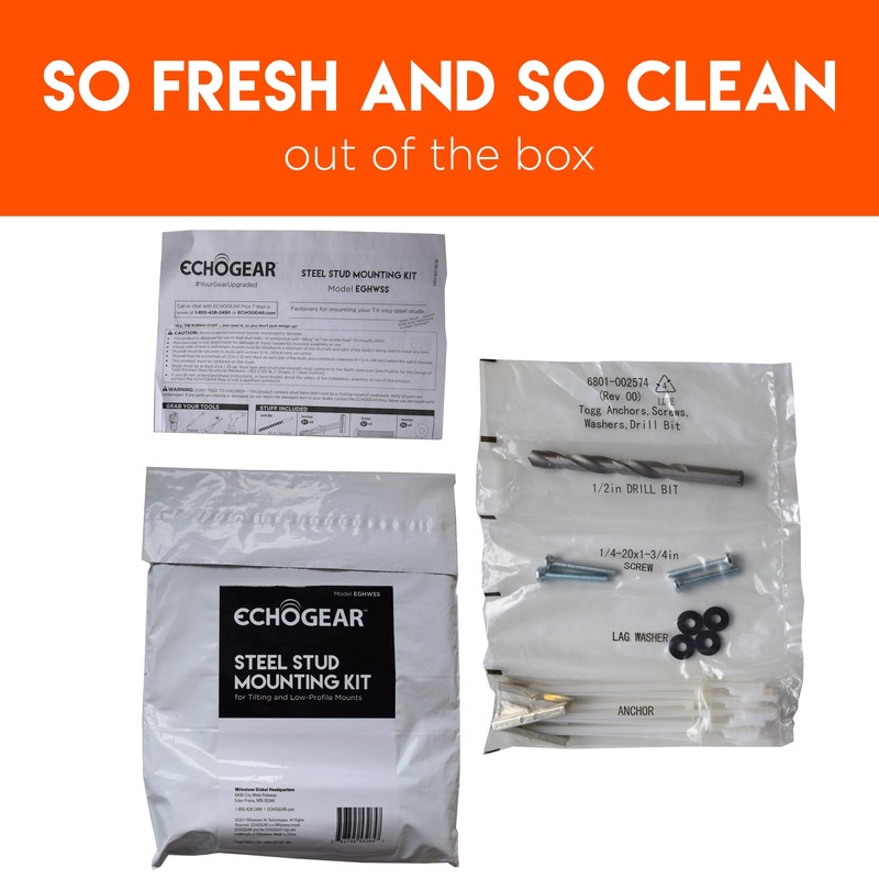 - This kit's basically the "easy button" for mounting a TV to steel studs - it includes everything you'll need to make it happen.