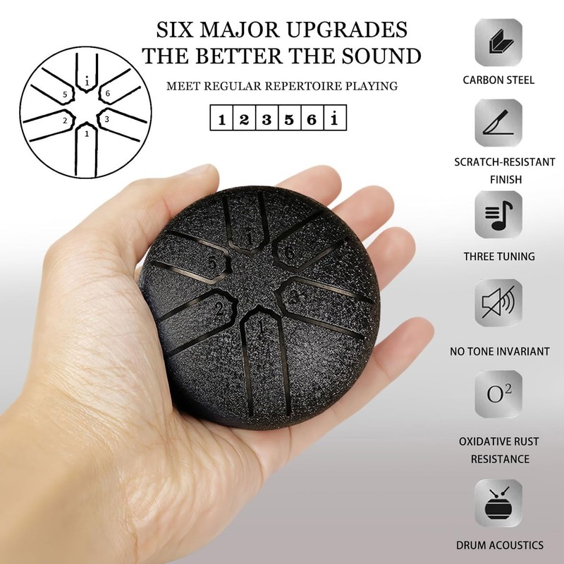 - EASY TO PLAY With 6 tones covering a wide range of sounds, it's easy to play this steel drum with the included drum mallets or by hand, whether you are a professional musician or a beginner, this drum is designed to inspire and captivate.