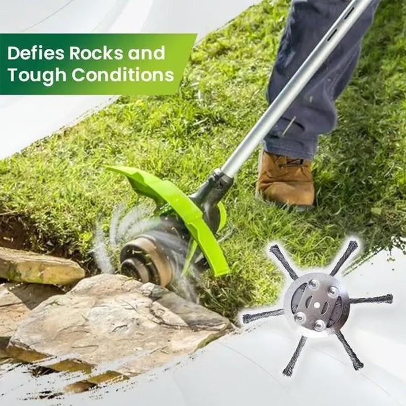 - Durable Steel Wire Construction: Crafted with high-strength steel wire, the brush cutter wire wheel offers superior hardness and durability. This design allows the metal trimmer head to withstand demanding surfaces like concrete, rocks, and hard blocks, delivering reliable, long-lasting performance