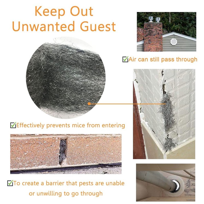 - 【Widely Use】: Steel wool can be used for indoor and outdoor filling. Such as holes or crevices in brick walls, around plumbing pipes air conditioning units, windows, vents, siding, garage, kitchen, attic and more. Effectively deter rodents, insects and other pests from entering homes or office buildings.