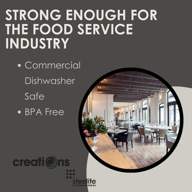 - DURABLE PLASTIC MATERIAL Creations by Steelite is made of high-quality nearly indestructible, chip, shatter resistant, break resistant material; Reduces the costs associated with replacement of serveware like porcelain or ceramic