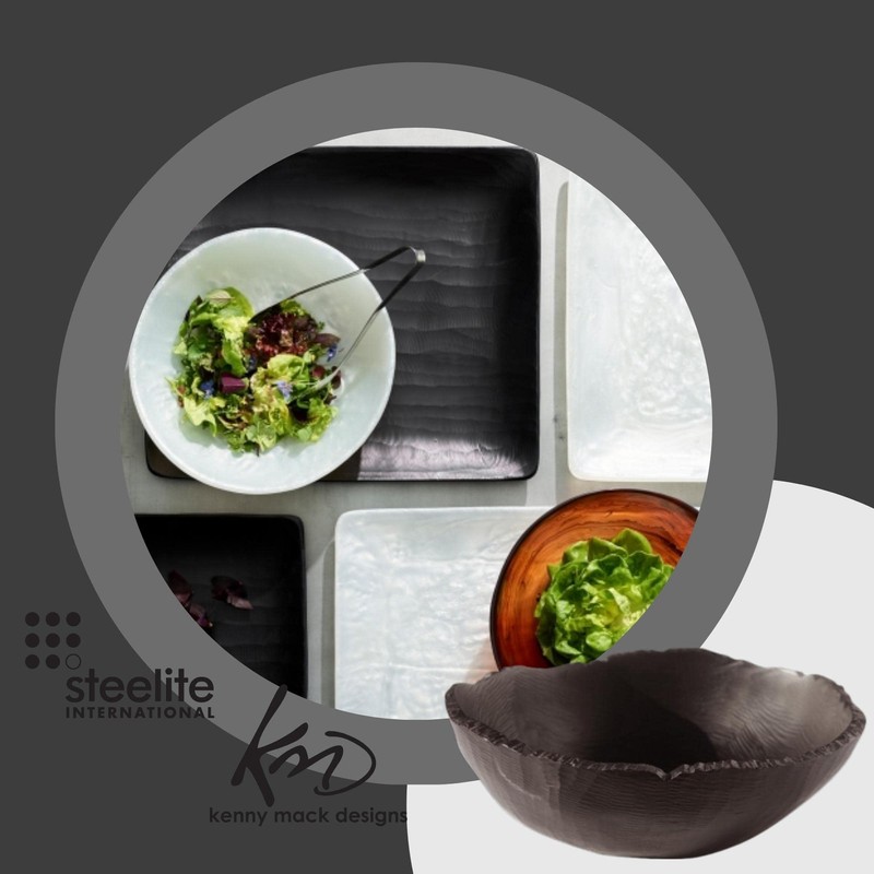 - Bring bold to food food display and plating with our Kenny Mack Bark Edge Uneven Oval Bowls; Made from durable resin, these nicer-than-plastic or acrylic bowls are perfect for your asparagus, taco or veggie serving stations