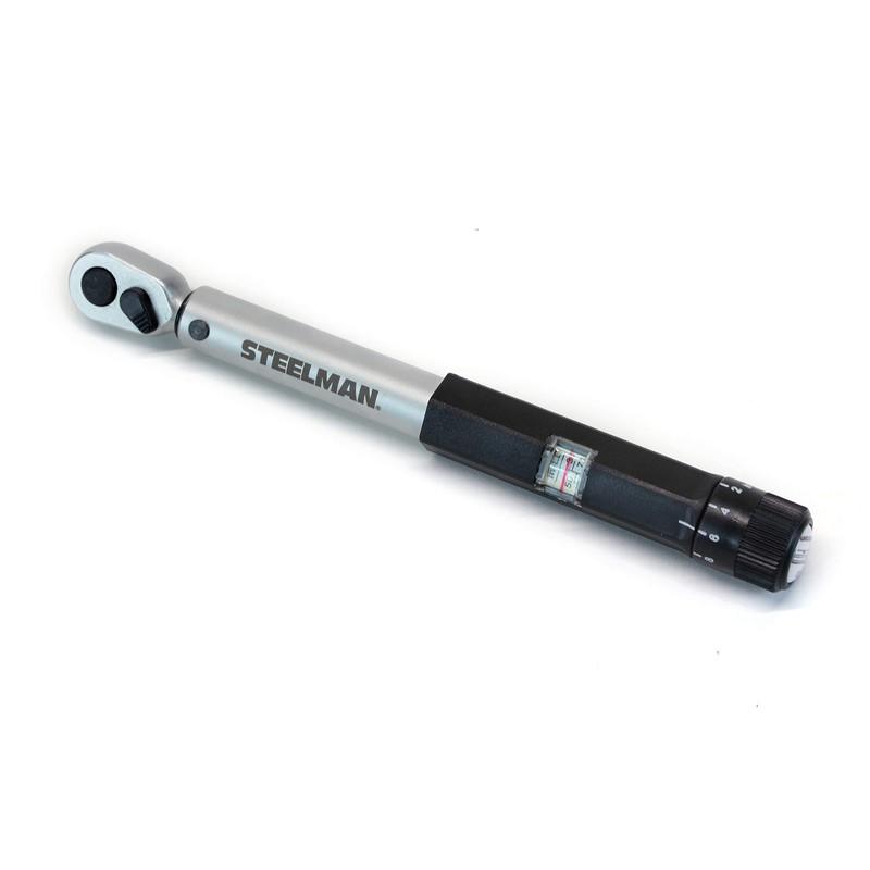 It's not just the people working on the big projects that need to accurately torque fasteners and to help with those smaller precision jobs we offer the STEELMAN 96196-B 1/4-Inch Drive 30-150 in-lb Micro-Adjustable Torque Wrench. Ideal for smaller jobs like TPMS sensors, bicycles, motorcycles, and other small engines, this torque wrench will help you finish with the confidence that your repair job is as good as any factory or repair garage would do. Useable with any 1/4-inch drive socket and adjustable in increments of 2 in-lb in a range of 30 to 150 in-lb this carbon steel tool will make a click that you can both hear and feel when you've reached the desired torque on the fastener. The reversible design allows the wrench to be used to drive fasteners in both directions, however it only measures torque when rotated in a clockwise direction. An inset viewing window in the handle lets you know at a glance what the current torque settings are and can be adjusted by rotating the dial on the base of the handle. To prove our confidence that your torque wrench is ready to go each STEELMAN torque wrench comes with a certificate of calibration. STEELMAN is an industry leader in automotive and industrial specialty tools and equipment, manufacturing the highest quality, unique, and innovative tools and products, designed to meet the specific needs of mechanics, contractors, and other working professionals.