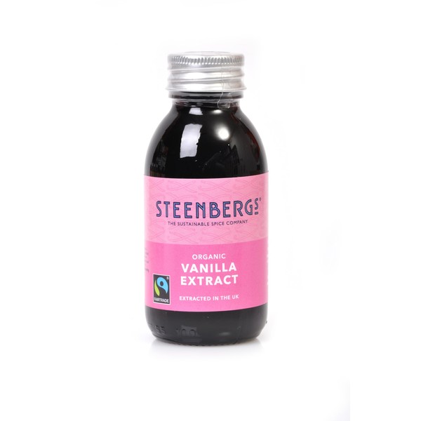 Steenbergs Organic Fairtrade Vanilla Extract was the UK and Europe's first organic Fairtrade vanilla extract. Organic Fairtrade Vanilla Extract comes in this handy 100ml size works in everyone's kitchen! Use Steenbergs Organic Vanilla Extract in puddings of all shapes and sizes, ice cream, add to whipped cream, use with fruit, add a dash to hot chocolate. The uses are plentiful of organic vanilla extract and if you love vanilla then Steenbergs Organic Fairtrade Vanilla Extract is a must. Created in the UK only for Steenbergs from organic Fairtrade vanilla beans sourced by Steenbergs direct from the curer in Madagascar. Ingredients in Steenbergs Organic Fairtrade Vanilla Extract - organic ethanol ( alcohol ), water , Fairtrade organic vanilla extractives There is no added sugar in this organic Fairtrade vanilla extract and is suitable for vegetarians and vegans. Steenbergs is the organic and Fairtrade spice specialists based in rural North Yorkshire, UK. Steenbergs was the first UK company (one of three in Europe) to be able to trade and sell spices carrying the Fairtrade Mark. Set up and run by a husband and wife team, Steenbergs sources many of its spices direct from producers, packing and creating with care at the spice factory.