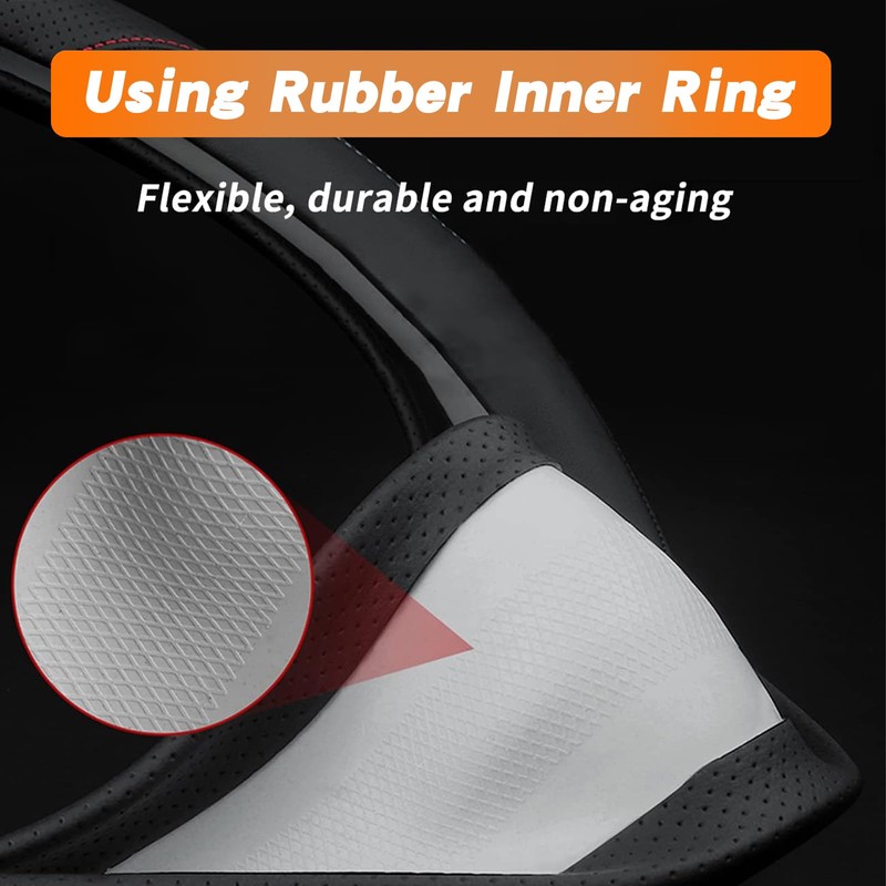 - [Double-layers] - This steering wheel cover is soft, tough and tensile, cause the inner layer is made of textured rubber, and outer is made of black heavy-duty microfiber leather with 3D honeycomb design, makes it durable and a stylish car décor.