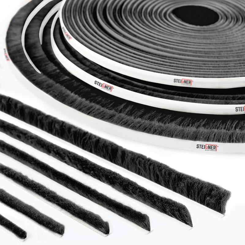 - Steigner offers self-adhesive brush seals in 5 colours (white, beige, brown, grey and black) and in different heights and lengths. So you can only order as much as you really need.