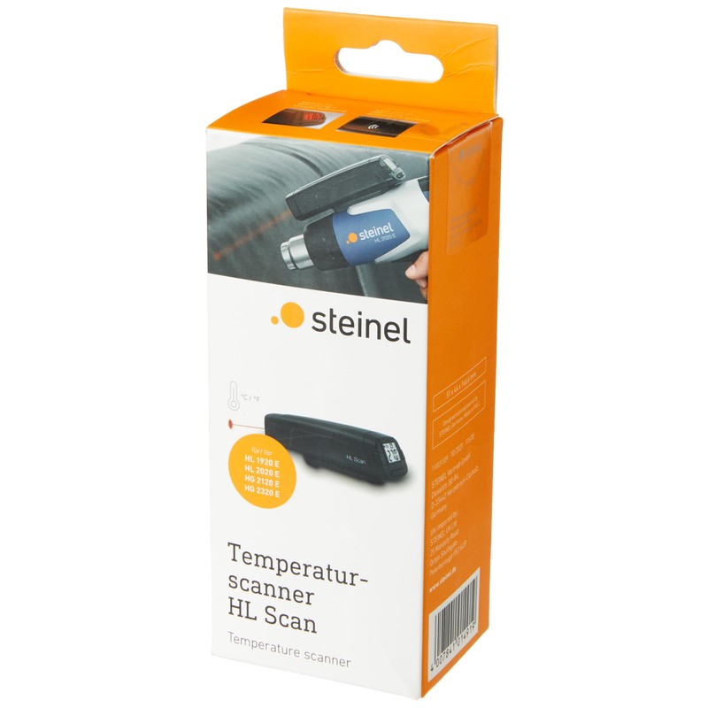 Steinel HL Scan Temperature ScannerHL Scan measures the temperature at the workpiece surface while working on it with the hot air tool. An acousticesignal sounds as soon as the heat either exceeds or falls below the ideal temperature. The display also shows whether workpiece surface is too hot or too cold. Red means "too hot", green means "Ideal temperature", and blue means "too cold".The warning tolerance range can be selected to suit individual needs. If chosen, the visual and acoustic warning can be deactived.Features & Benefits - Warning Tolerance Range Adjustable by User - Visual and Acoustic Warnings can be Switched On and Off as Required - Visual and Acoustic Indicators to Signal if Temperatures goes above or below treshold. Green ligjt to indicate ideal working conditions The HL Scan can be fitted to hot air tools HL 1920 E, 2020 E, 2120 E, HG2120 E and HG 2320 E Â