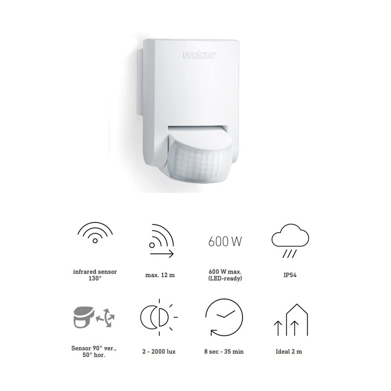 Steinel IS 130-2 Motion Sensor 130° Motion Sensor 12 m Range for Indoor and Outdoor Use IP 54 White