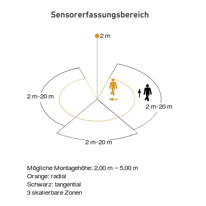 - 4 infrared sensor system - 300° detection range, max. 20 m range adjustable in 3 independent directions, with extra sensor for anti-creep protection