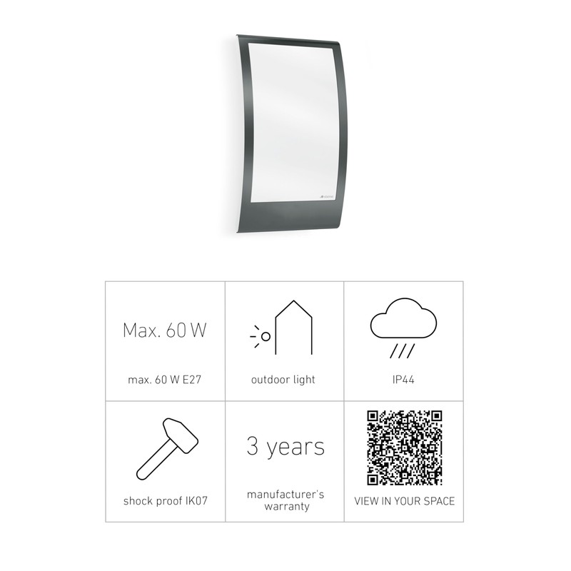 Steinel Steinel Au?enleuchte L 22 Anthrazit, Edelstahl-Blende, max. 60 W Au?enwandleuchte, E27 Fassung, moderne Wandleuchte
