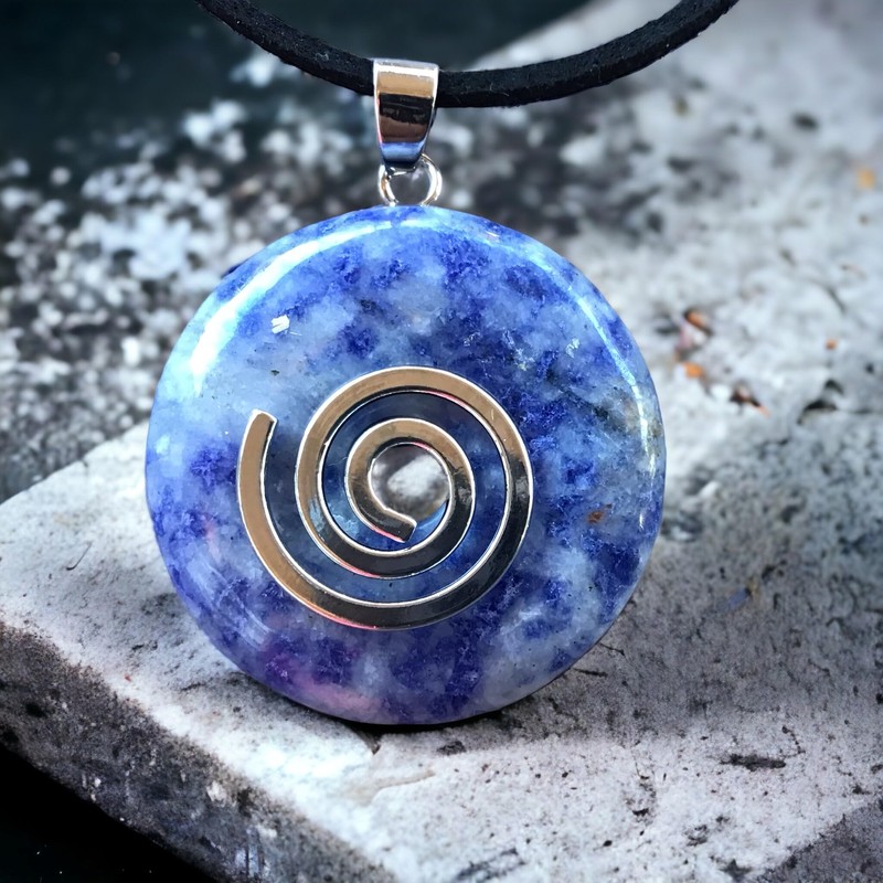 Steinfixx® - Premium Blue Aventurine Donut (Blue Quartz) Optional Necklace with Silver or Gold Pendant and 80 cm Leather Cord | Healing Stone | Gemstone | Chakra Stone, Crystal Gemstone Crystal