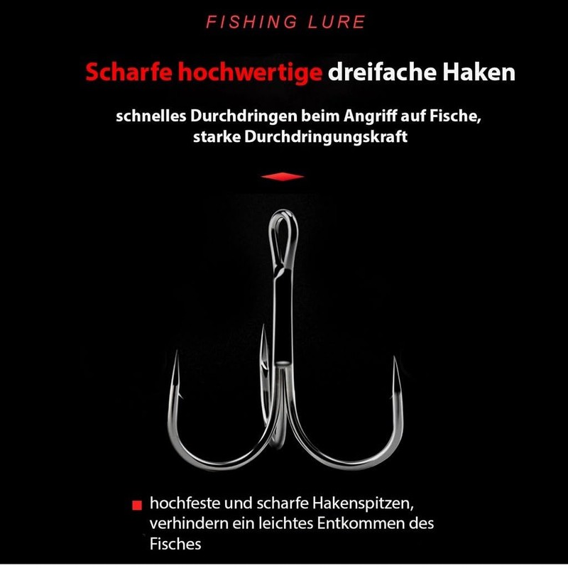 • Sharp hooks - The swimbait body is equipped with two rust-proof treble hooks on the outside, high durability and flexibility, suitable for fresh and salt water, hook size is appropriate and they are also quite sharp.