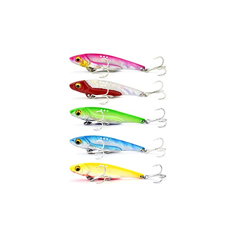Steinn Wobbler | 5 Pieces Metal VIB Bait Hard Bait Fishing Lure Set | 3D Eyes Fishing Spinner Bass | with Treble Hook with Box (steinn005)