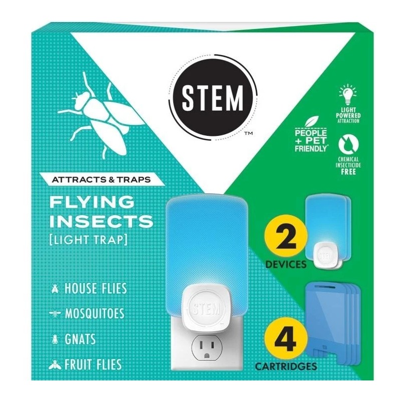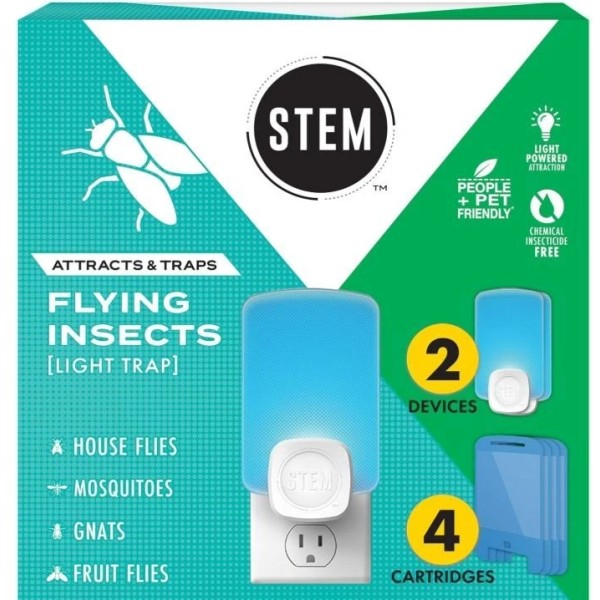 STEM Indoor Fruit Fly Light Trap, 2 Pack Plug-ins and 4 Cartridge Starter Kit