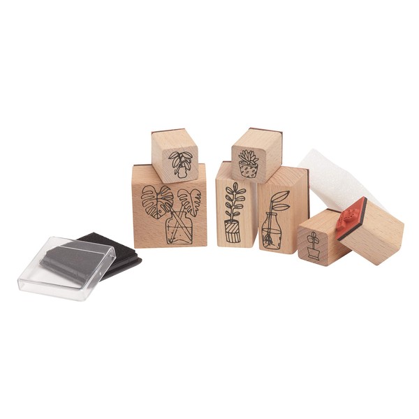 • Contents: the wooden stamp set consists of 8 different stamps and an ink pad in the colour black.