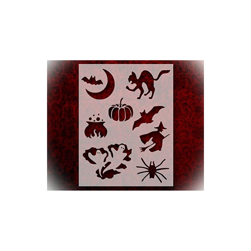 Stencil Halloween Bat Cat Pumpkin Witch + 8.5" x 11" Custom Reusable Sturdy Flexible Clear Plastic Stencils Arts and Crafts Material Scrapbooking for Airbrush Painting Drawing