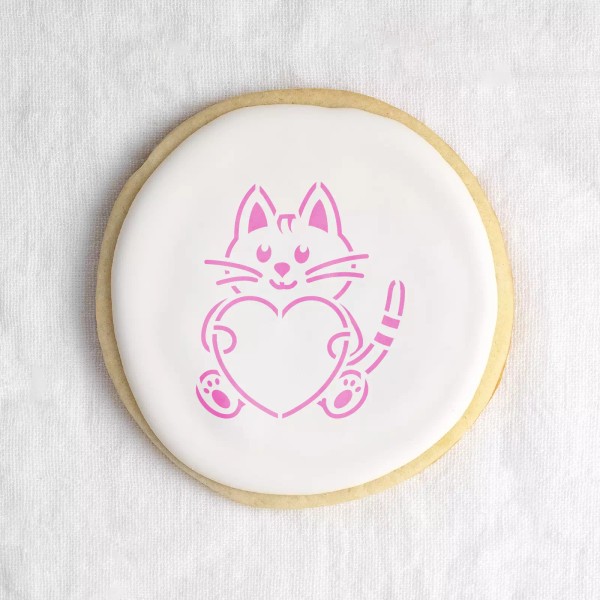 Stencil Revolution Heart Cat Cookie Stencil - Durable & Reusable Mylar Stencils