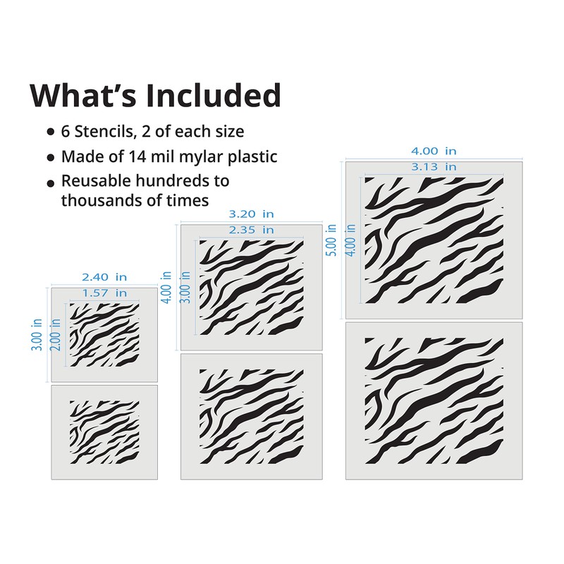 Stencil Stop Tiger Stripes Stencil - Reusable for DIY Projects, Painting, Drawing, Crafts - 14 Mil Mylar Plastic (6 Pack (2", 3", and 4", 2 Each))
