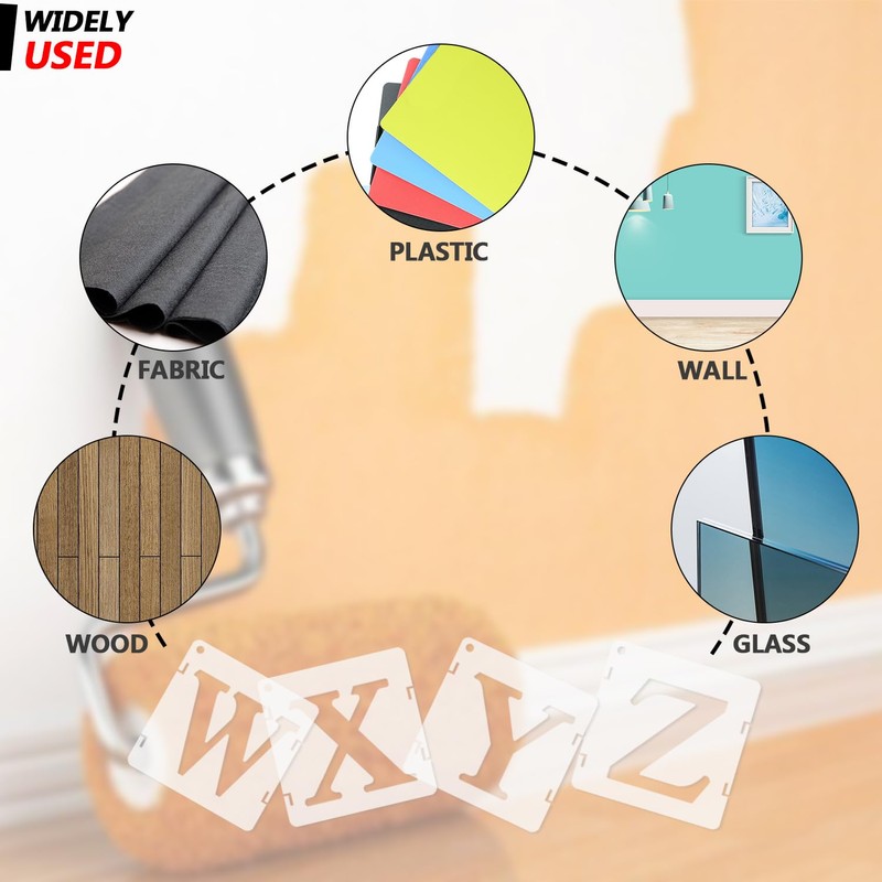 - Wide application: drawing accessories are suitable for most pens, gel media, sprays, ink, texture pastes, chalk, sprays, mist, acrylic paint and more. Labeling stencils are great for painting on a variety of materials. The large letter stencils for painting on wood, walls, boards, stones, fabrics, plastics, metals, glass, etc.