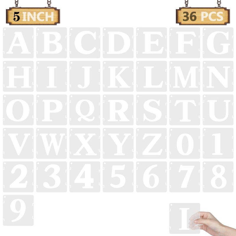 Stencils, 36 Pieces Alphabet Craft Stencils, Reusable Plastic Number Stencils, Letter Stencils for Painting on Wood, Wall, Fabric, Stone, Blackboard, Signage (12.5 cm)