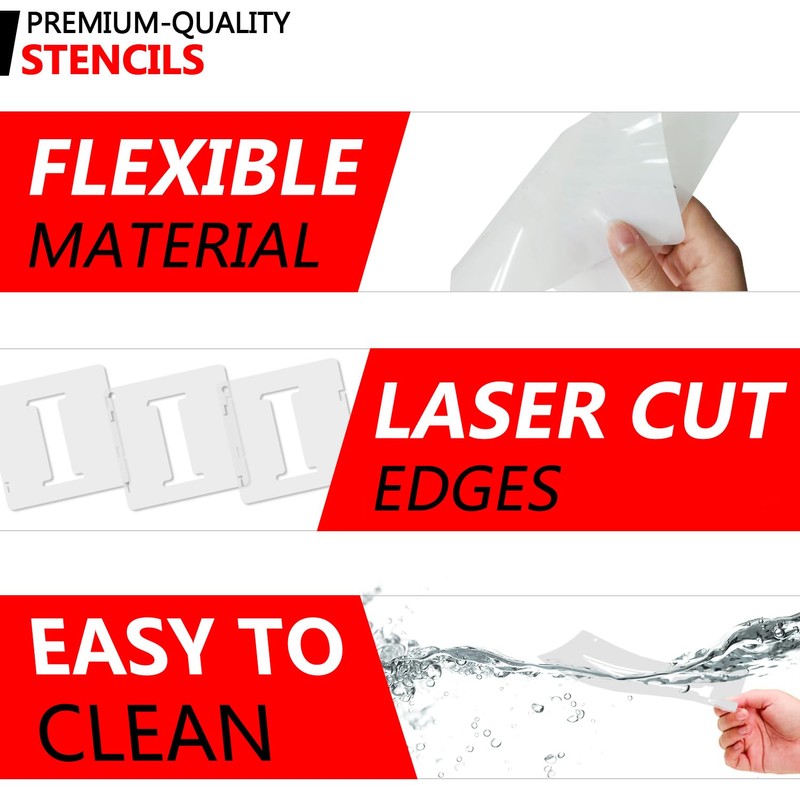 - Easy to use: Unlike normal alphabet templates, our templates use a proprietary, patented connection design, making the letter templates easy to align. You simply place them on flat objects, paint them with a brush or spray them with an airbrush and you can make words and numbers yourself to create exquisite, meaningful texts.