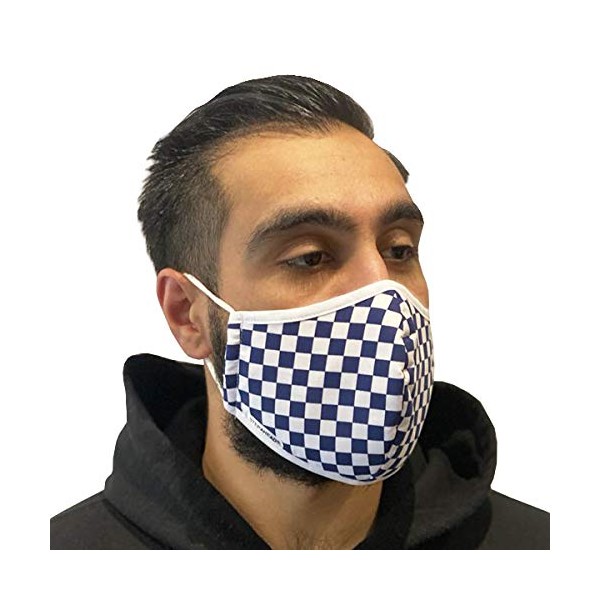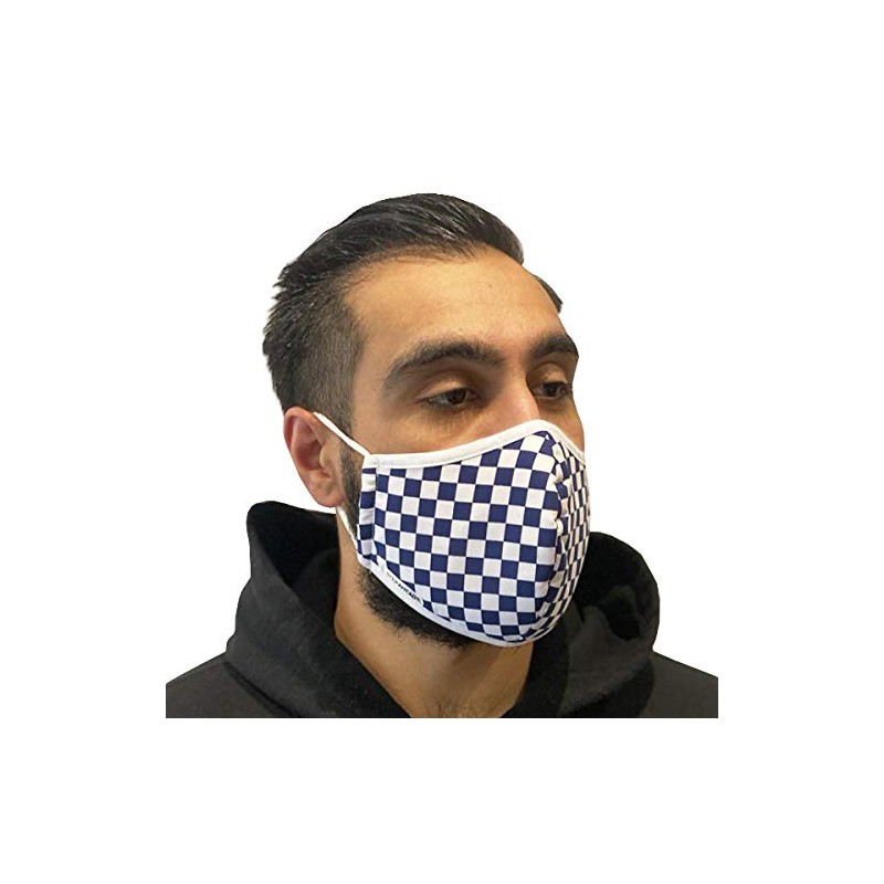 Step Ahead ® | 5 Pack Triple Layer Cotton Navy Checkered Face Mask (Pack of 5) ust, Pollution, Droplets | UK SelleR