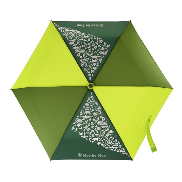 Step by Step Magic Rain Effect Double Umbrella for Kids with Colour Changing Bag and Wrist Strap 1st to 4th Grade, Lime - Yellow - Green, Modern