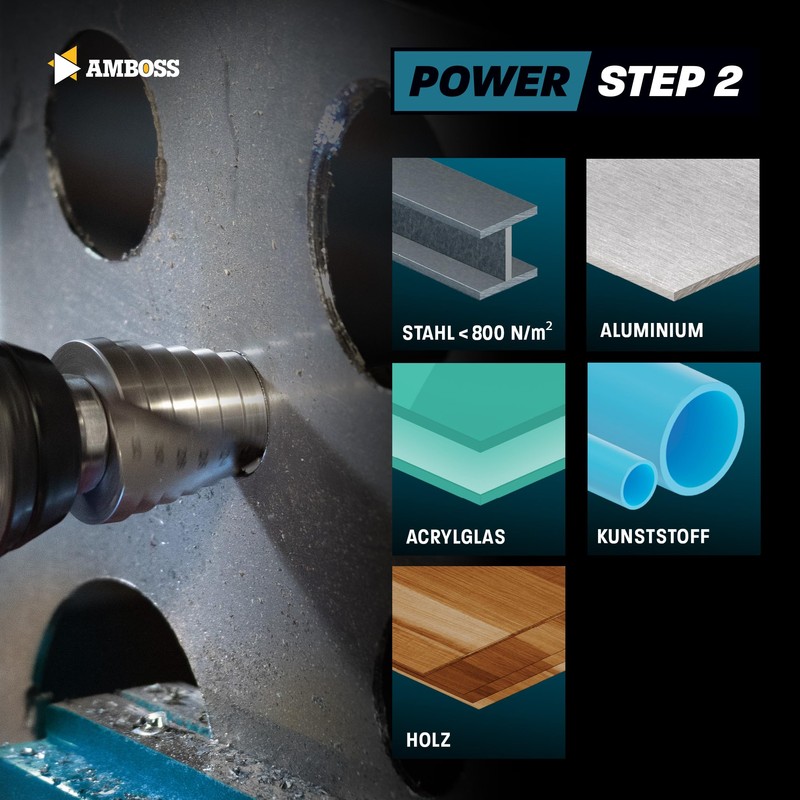 - Time-saving and efficient 9 levels PowerStep. The 9 precisely graduated cutting edges (diameter 4 20 mm) allow you to quickly expand in one operation. No tool change ideal for sheet steel, non-ferrous metals and plastics.