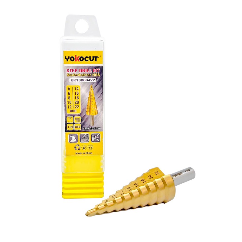 - Step Drill Bit HSS Titanium Step Drill Bit For Metal Multiple Hole Drilling Cone Drill Bit Stepped Up Bits For DIY Lovers (4-22MM Step Bit)