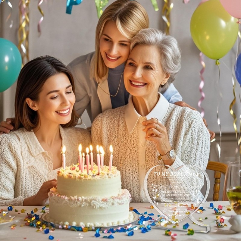 - Great Gift: The heart shaped acrylic ornament is a special and meaningful gift for stepmother gifts. Whether as a birthday gift for mother in law or a gift to celebrate retirement, golden wedding anniversary and other special days, it is a warm and appropriate gift that will make the recipient feel your heart.