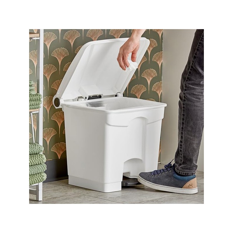 Step-On Trash Can, 8 Gallon, White, Rectangular, Heavy Duty Plastic, 16W x 16D x 17H inches
