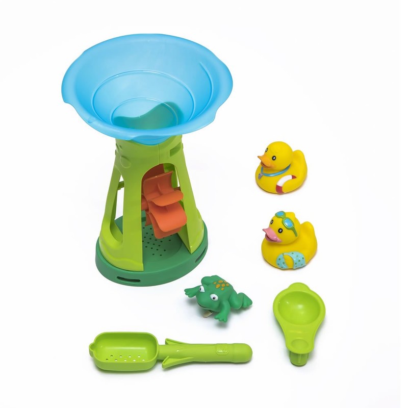 - Scoop up the water and splash into the whirlpool water tower to add to the splashing fun!