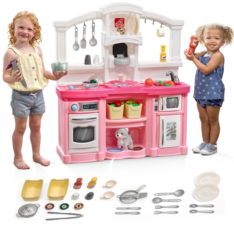 Step2 Fun with Friends Kids Kitchen Playset, Indoor/Outdoor Kitchenette, Interactive Play with Lights and Sounds, Durable Plastic, Includes 25 Piece Toy Accessories, Toddlers 2+ Years Old, Pink