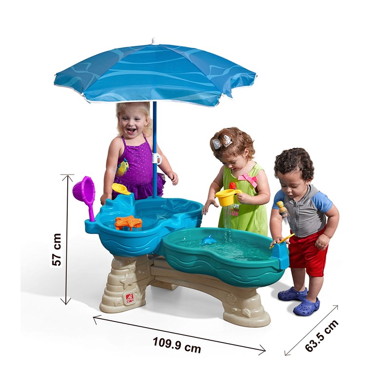 - The water table’s spacious design allows multiple kids to play for lots of splish-splash fun together. Attached the included umbrella to keep little ones cool and comfortable during hot, sunny play days!