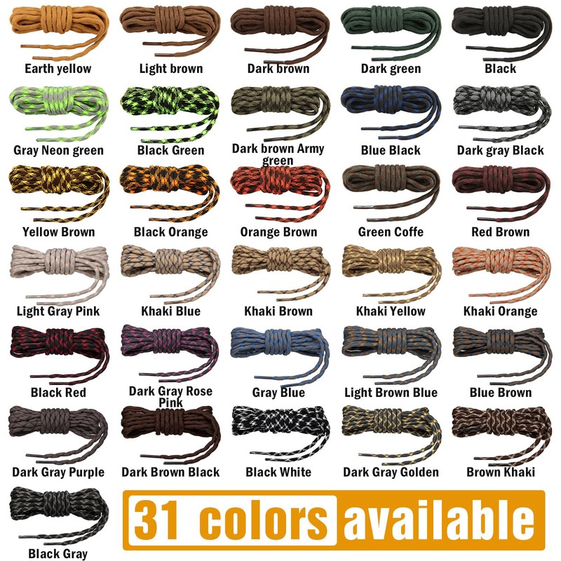 - SALES SERVICE: 2 pairs of round laces (4 laces) to help you cope with the challenges of the outdoors without any worries