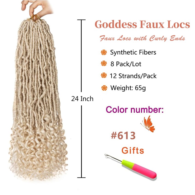 Stephanie 24 Inch Goddess Faux Locs Crochet Braids With Curly Ends 8 Pack Soft New Faux Locs Hair Natural Black Pre Looped Synthetic Crochet Braiding Hair for Women (613#, 24 inch)