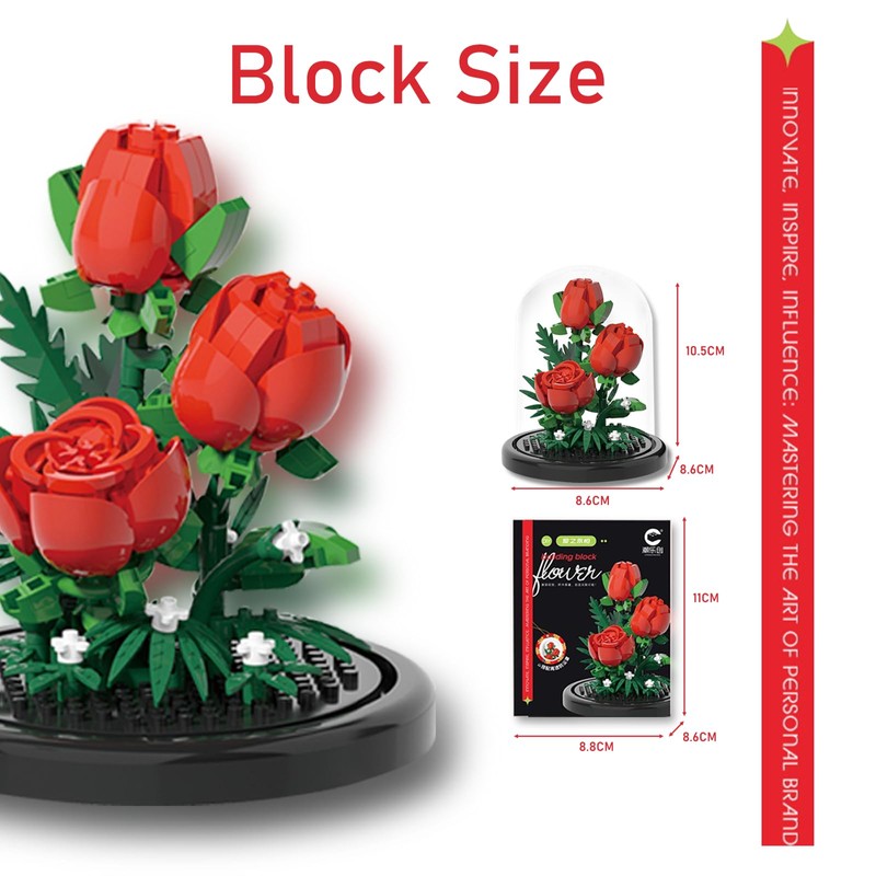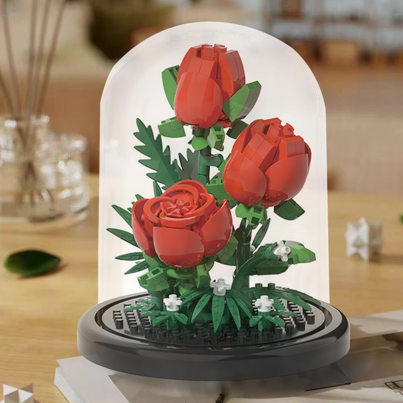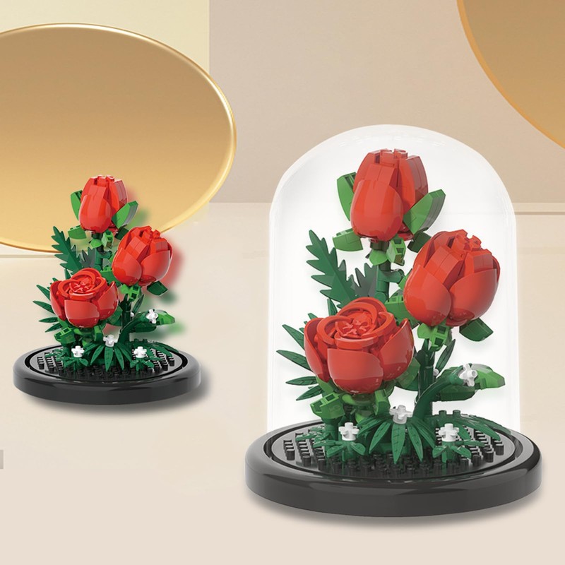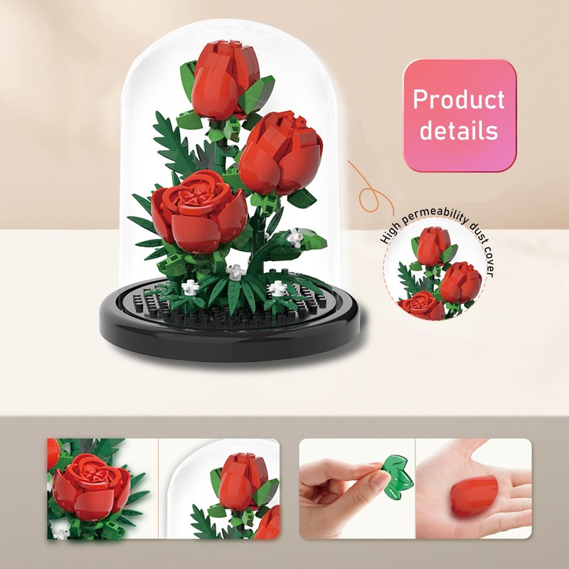 STEPRITP Flowers Miniature Building Blocks, Flowers Rose Building Blocks, Bouquet Set with Dustproof Dome, Eternal Rose Clamping Blocks, Flowers for Mum, Girlfriend, Partner