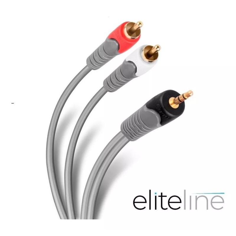 Cable para Teatro en Casa con conector macho de 3,5 mm estéreo a dos conectores macho RCA. Longitud de 1,8 m.